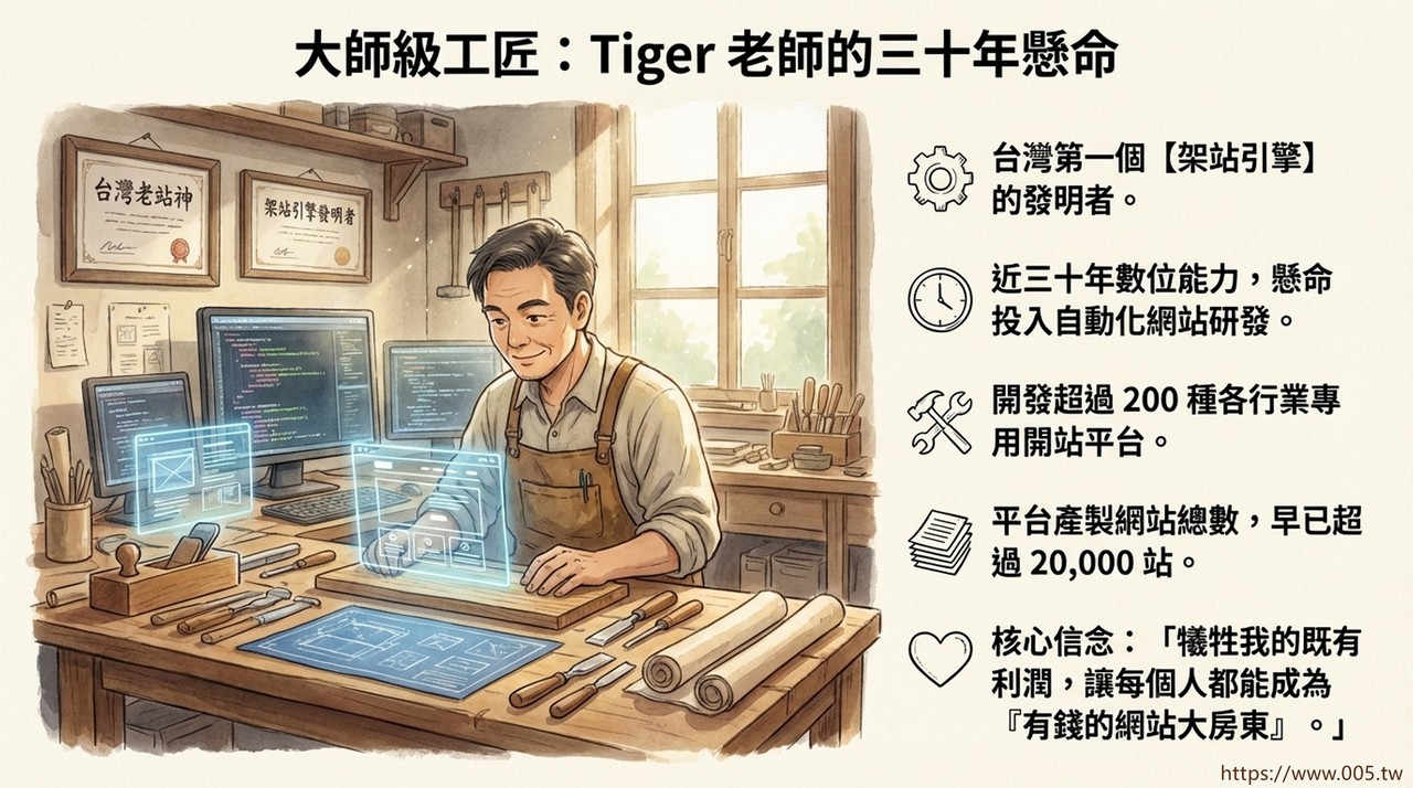 Tiger老師是自動建站的專家 | 台灣站神 | 架站平台 | 台灣站王 | Tiger老師 | 創業導師 創業老師 | 五元網站包租公 |