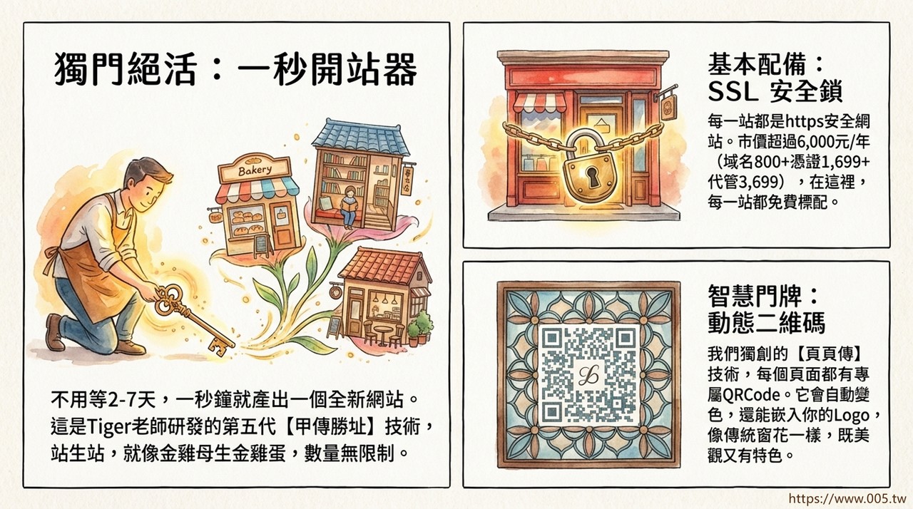 Tiger老師用二十幾年的時間,發展出超過200種開站器,產製超過二萬個網站。