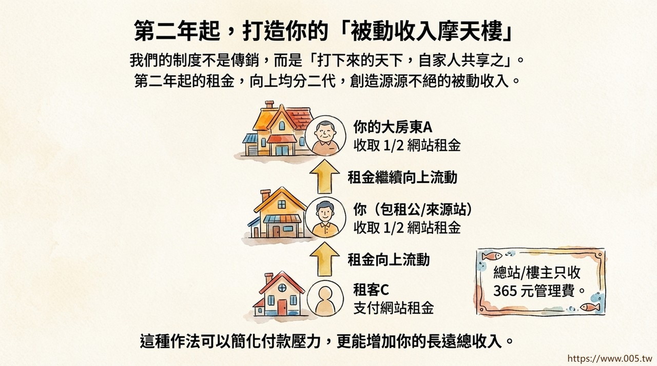 第二年起的租金:向上均分二代,創造源源不絕的被動收入。